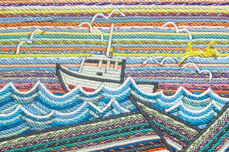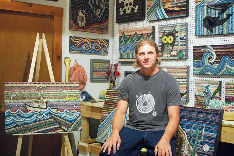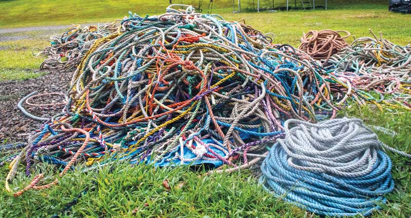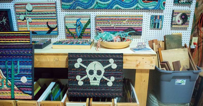 “I was painting but also picking up washed up lobster warp,” he said, recalling his transition from using brushes and easels to finding new and creative ways to put marine debris to use. “I was living in Cushing and would walk the shore, and I was always finding little pieces and would pick them up. I kind of coined the term ‘drift rope’ to describe them.”
