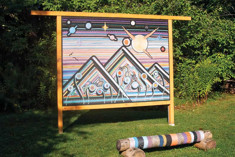 This perspective has also led to Darling finding unique ways to display the art. His first brush of notoriety with the Drift Rope Project came after he received a grant from the Maine Arts Commission in 2021 and was awarded an installation at Merryspring Nature Center in Camden. The piece he installed is a landscape of a mountain with swirls jutting up from the bottom representing plants and trees, and a sky full of planets across the top. The size of the work and the varying shades of rope used throughout are awe-inspiring. The grant gave him an opportunity to experiment with the process for adhering the rope to the wood.