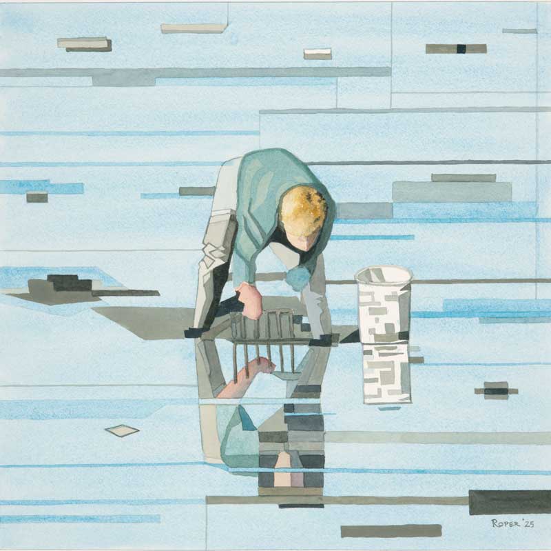 “I like straight lines,” Diana Roper McDowell explained. “They’re calming.” In her remarkable watercolors, McDowell uses those lines to transform landscapes, figures, wildlife, boats, and other subjects into compelling designs. She calls her particular approach “abstract realism.”