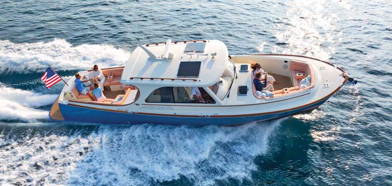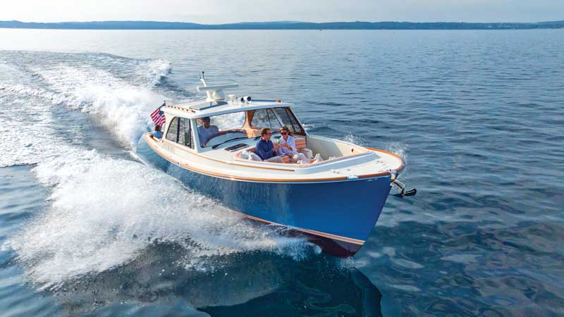 To cap it all off, a transom door provides access to a wide boarding platform all the way aft that’s ideal for hopping aboard, landing a fish, or taking a dip. Altogether, as a versatile platform for day trips, cruising, kicking back, watersports, and even the occasional overnight stay in a secluded Maine cove, the Picnic Boat 39 is pretty hard to beat.