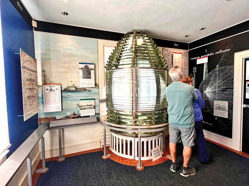 When I entered, I was immediately struck by the size and complexity of the second-order Fresnel fixed lens that was on display. It once sat atop the tower, from 1865 until 1958, when a rotating, flashing beacon was installed. The impressive, beehive-shaped assembly of reflective glass prisms stands some 10 feet tall. Studying the museum’s numerous artifacts, models, and vintage photos, we gained insight into the history of the lighthouse, the keepers and their families, and maritime events that played out in surrounding waters—including several other shipwrecks.