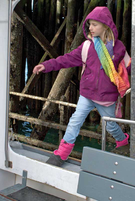 Sumner was headed to school on Little Cranberry. The frigid northwest wind blew over 20 mph, but she was unperturbed as the Double B pitched back and forth during the 15-minute ride. Rough to her meant a “three-ringer”—when the vessel’s bell rings three times—as the boat plows through steep waves.