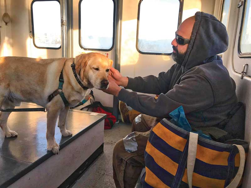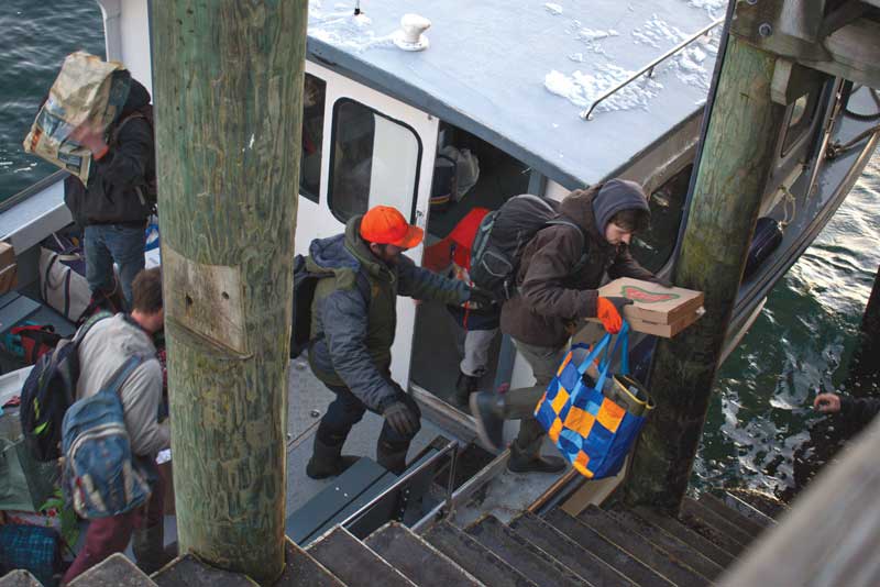 Like his brother Paul, Flores earned his captain’s license. Now, he is showing the ropes to another generation. The deckhand’s job entails handling the U.S. mail, punching tickets, shoveling snow, and wiping damp outdoor seats. They dispense dog biscuits and assist people with their groceries and baggage. They also interact with island kids, some of whom commute daily year-round.
