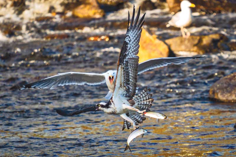 At that time, the fish ladder was being renovated, so there weren’t many alewives making the run. Because of that, hungry osprey were coming in close. Canon in hand, Lowe began shooting bird life around the fish ladder. “And that,” Lowe said, “is when I fell in love with bird photography.”