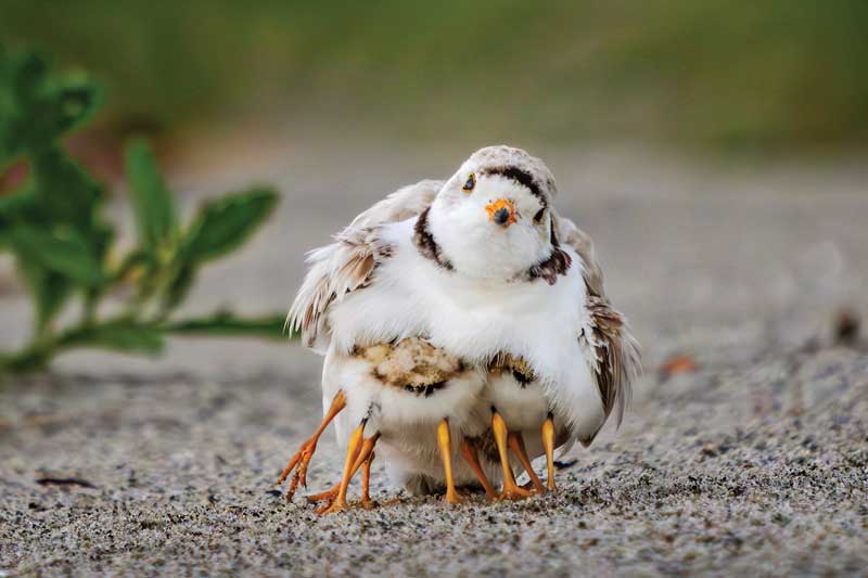 Take, for example, piping plovers. They are tiny little birds that weigh an ounce and a half when they’re fully grown and have a 4-inch wingspan. “People see them darting down a protected beach; I’ve had many people say, ‘We see them running around, but we don’t know what they really look like!’ I love to lie in the sand, camera at the ready, and wait for the birds to become comfortable with my presence. If I wait long enough, they ignore me, and I can capture unique, stop-action images,” he said.
