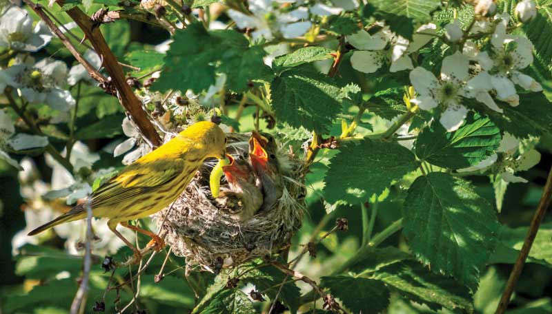 “I’ve made some unique images of yellow warblers feeding their chicks,” he said. It’s always extremely hard to find their nests. They hide. I must have stayed focused on that nest for five hours. But in the end, I ended up with a handful of images that were decent.