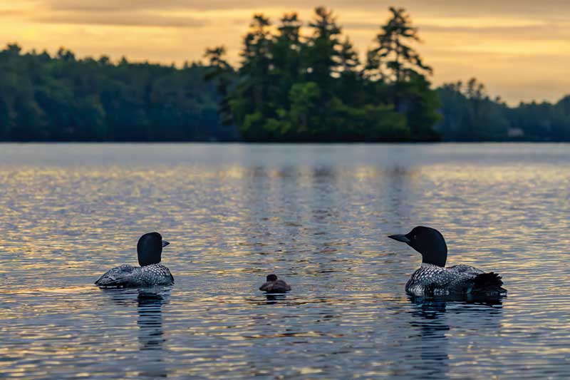 “The loons aren’t endangered, but they are protected,” Lowe noted. “It’s fascinating to watch how the mother and father raise their young. The parents are amazingly dedicated for 12 weeks or so. They have one purpose: to protect and feed that baby. Mom and dad both share the responsibility and take turns sitting with Baby Loon while the other goes off to feed.
