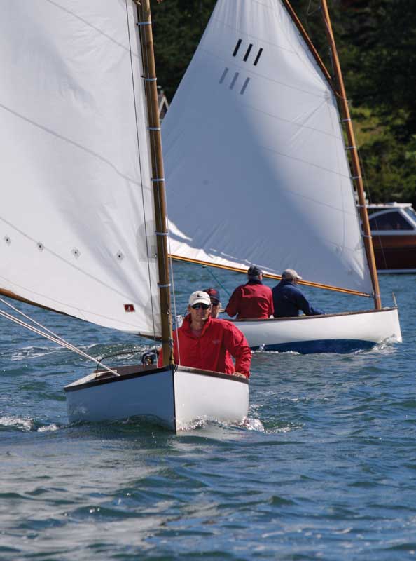 The shallow draft of the North Haven dinghies (13 inches with the centerboard up and almost 4 feet with it down) and big sail (118 square feet) make them surprisingly fast, especially downwind with the peak lowered and the centerboard up. But the boats also carry 350 pounds of lead ballast, which gives them the heft of a much larger boat and precludes quick moves.