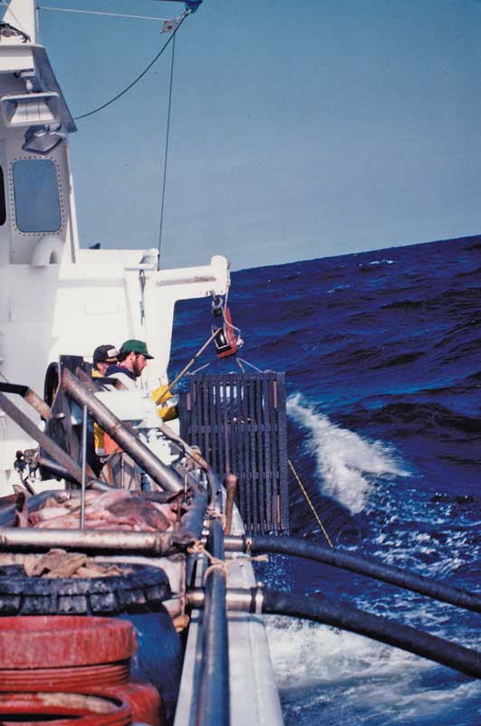 “The fall before, we’d been fishing out in 135 fathoms or so on those edges, but I brought three 10-trap trawls in and set them on a 50-fathom piece just outside of Little Georges. The last trip we made before winter set in, we hauled them to see what there was.